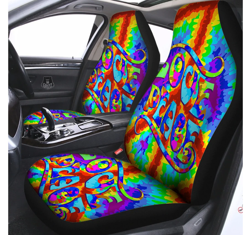 Hippie Car Seat Covers Love Peace Symbol Spiral Seat Covers Colorful
