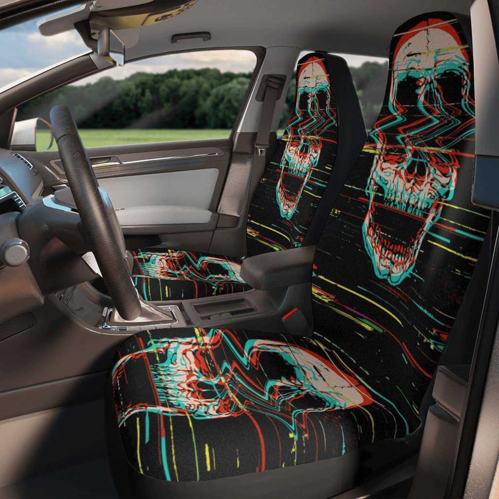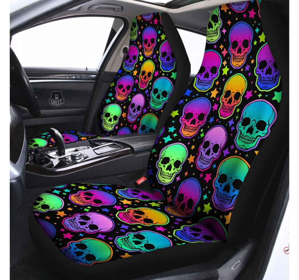 Skull Car Seat Covers Neon Light Skull Star Pattern Seat Covers Colorful