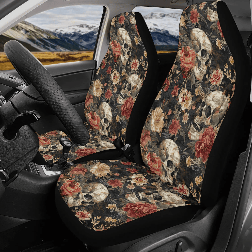 Skull Car Seat Covers Vintage Style Floral Skull Pattern Seat Covers Brown