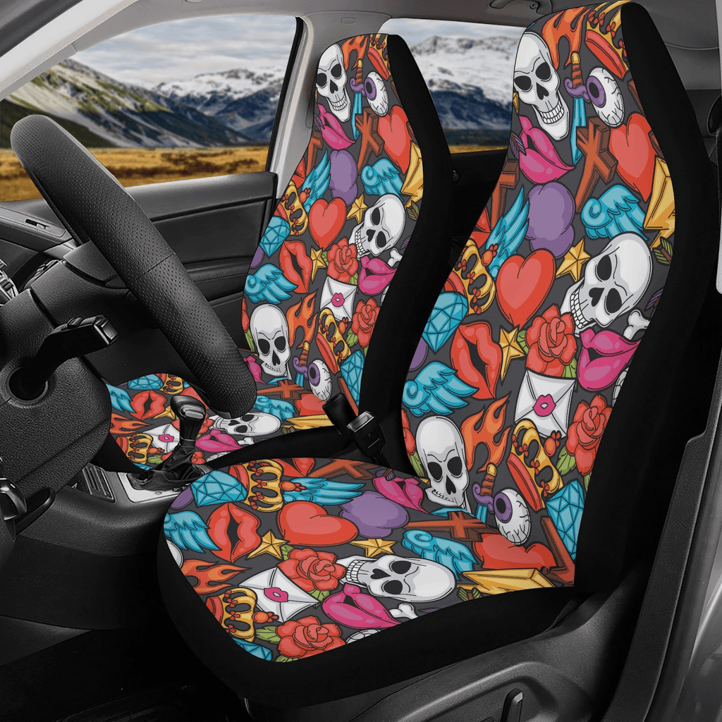 Skull Car Seat Covers Skull Heart Letter Flower Pattern Seat Covers Colorful