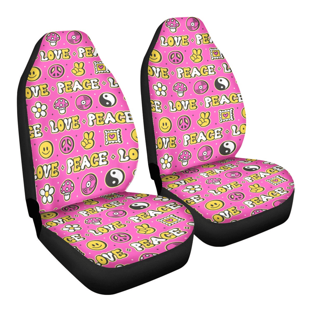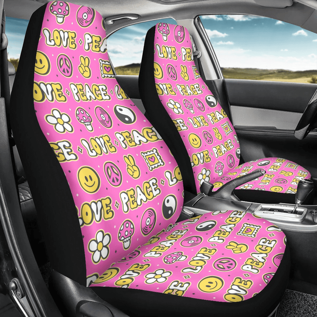 Hippie Car Seat Covers Peace Love Flower Mushroom Pattern Seat Covers Pink
