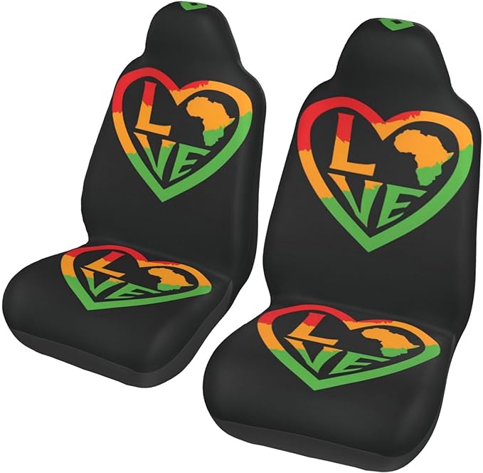 Juneteenth Car Seat Covers Love Heart Shape Africa Graphic Seat Covers Black