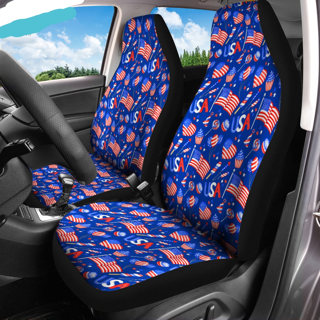 4th Of July Car Seat Covers USA Flag Candies Balloon Pattern Seat Covers Blue
