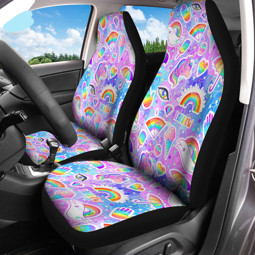LGBT Car Seat Covers Rainbow Unicorn Ice Cream Pattern Seat Covers Colorful