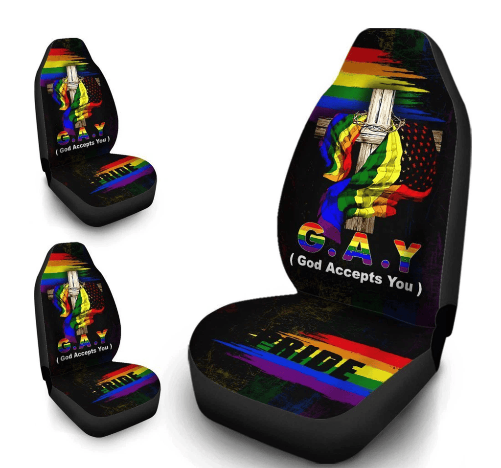 LGBT Car Seat Covers Pride LGBT Gay God Accept You Seat Covers Colorful