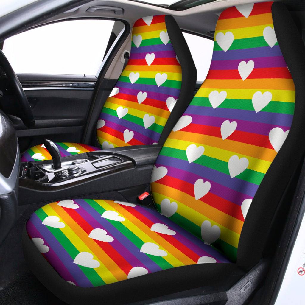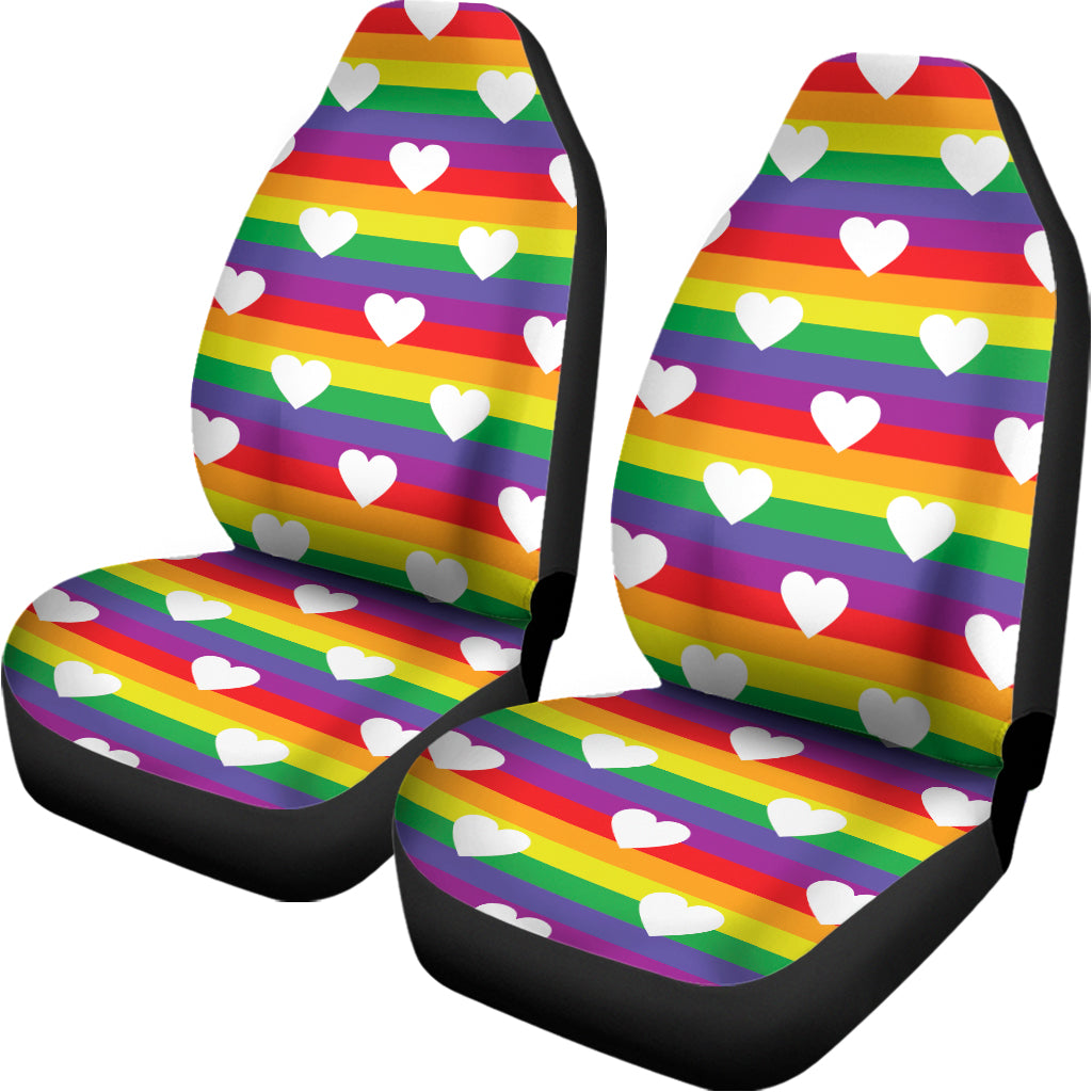 LGBT Car Seat Covers Heart Pattern On LGBT Pride Rainbow Seat Covers Colorful