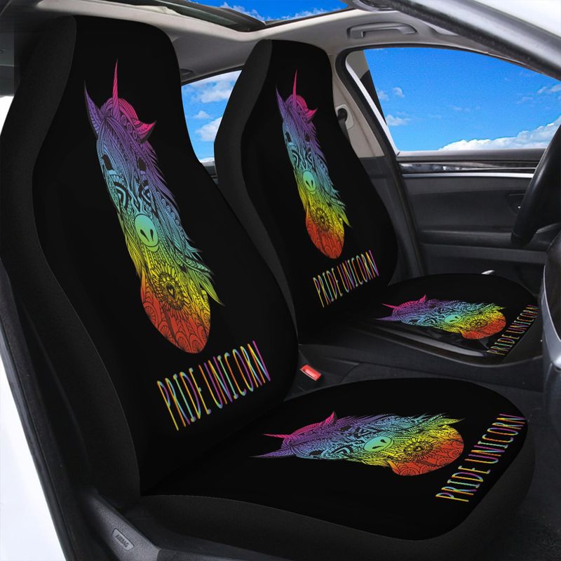 LGBT Car Seat Covers LGBT Pride Unicorn Mandala Pattern Seat Covers Black
