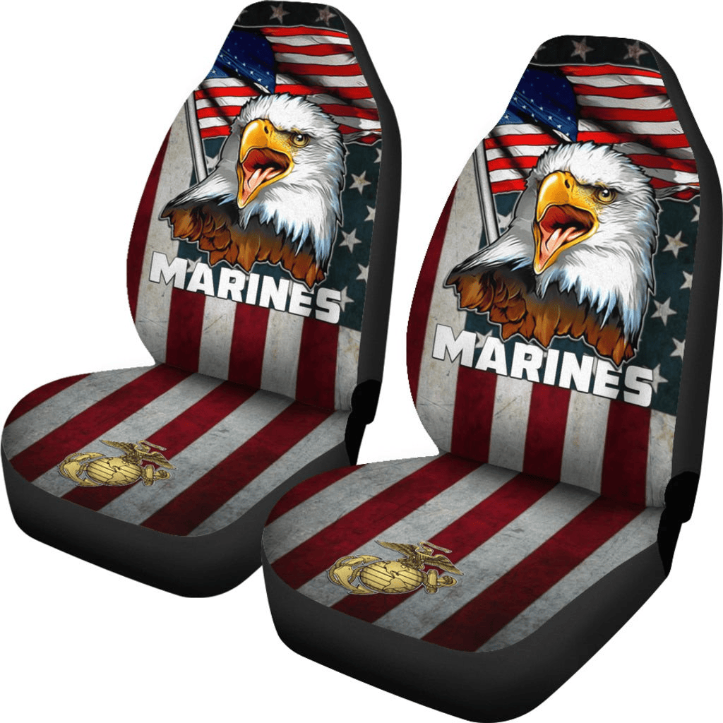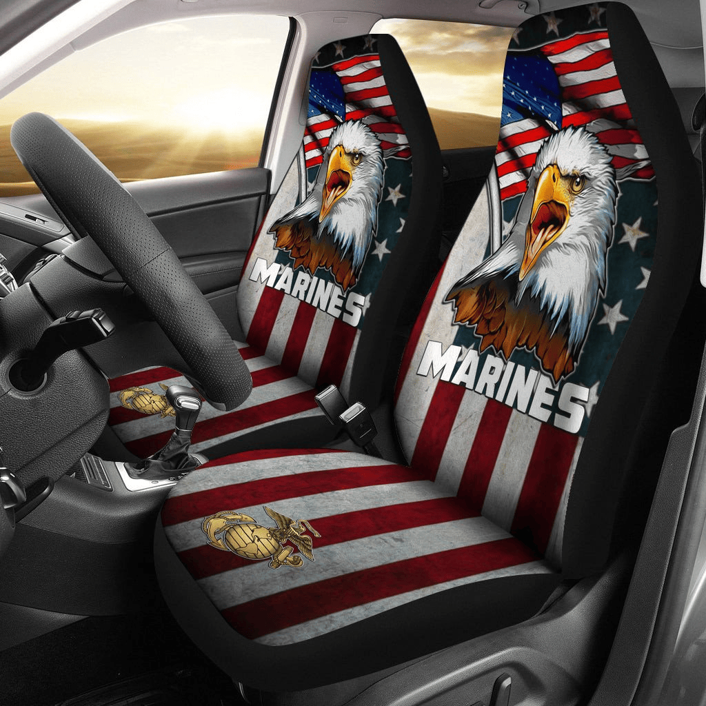 Veteran Car Seat Covers American Flag And Eagle Marines Symbol Seat Covers Red Blue