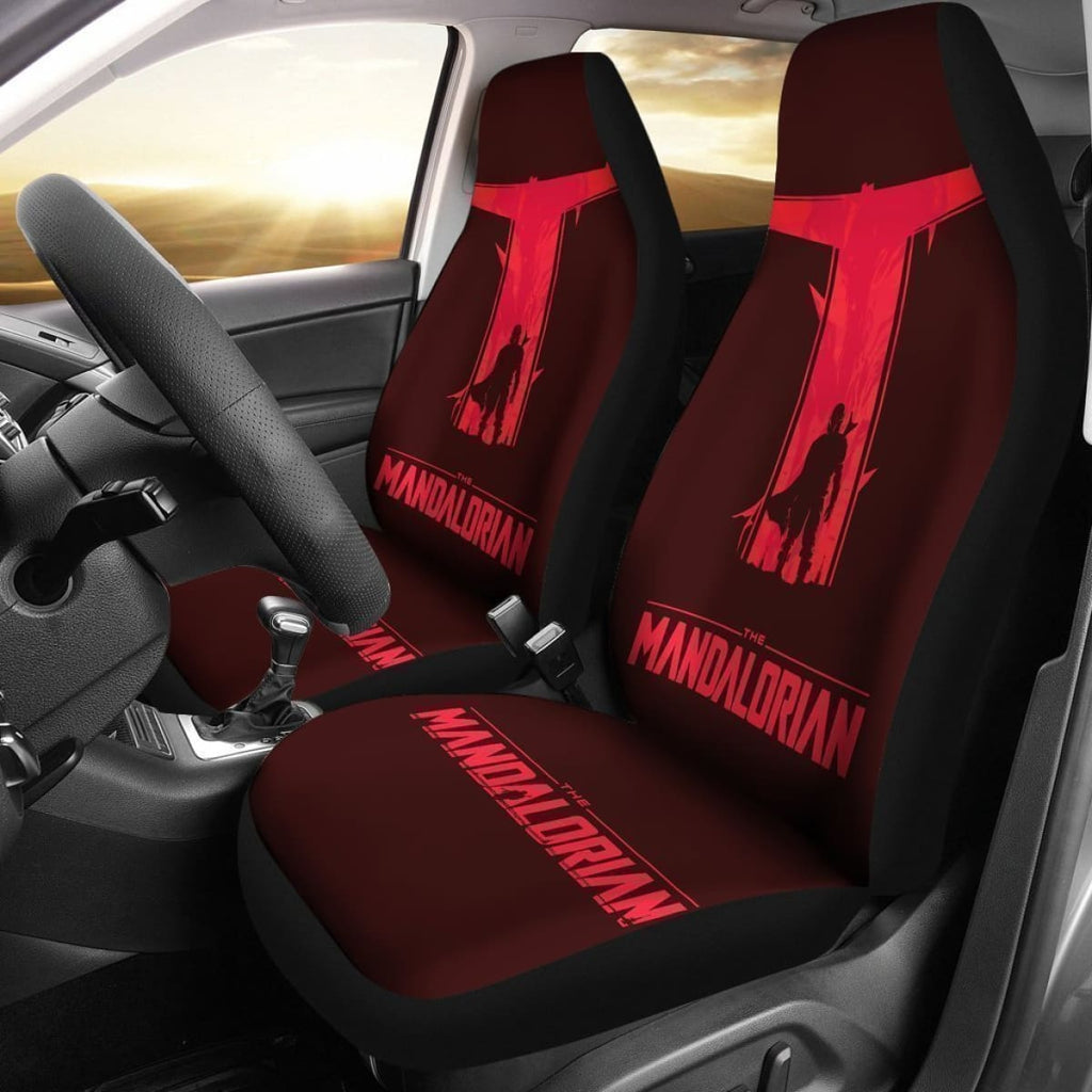 SW Car Seat Covers SW Mandalorian Silhouette And Helmet Seat Covers Red
