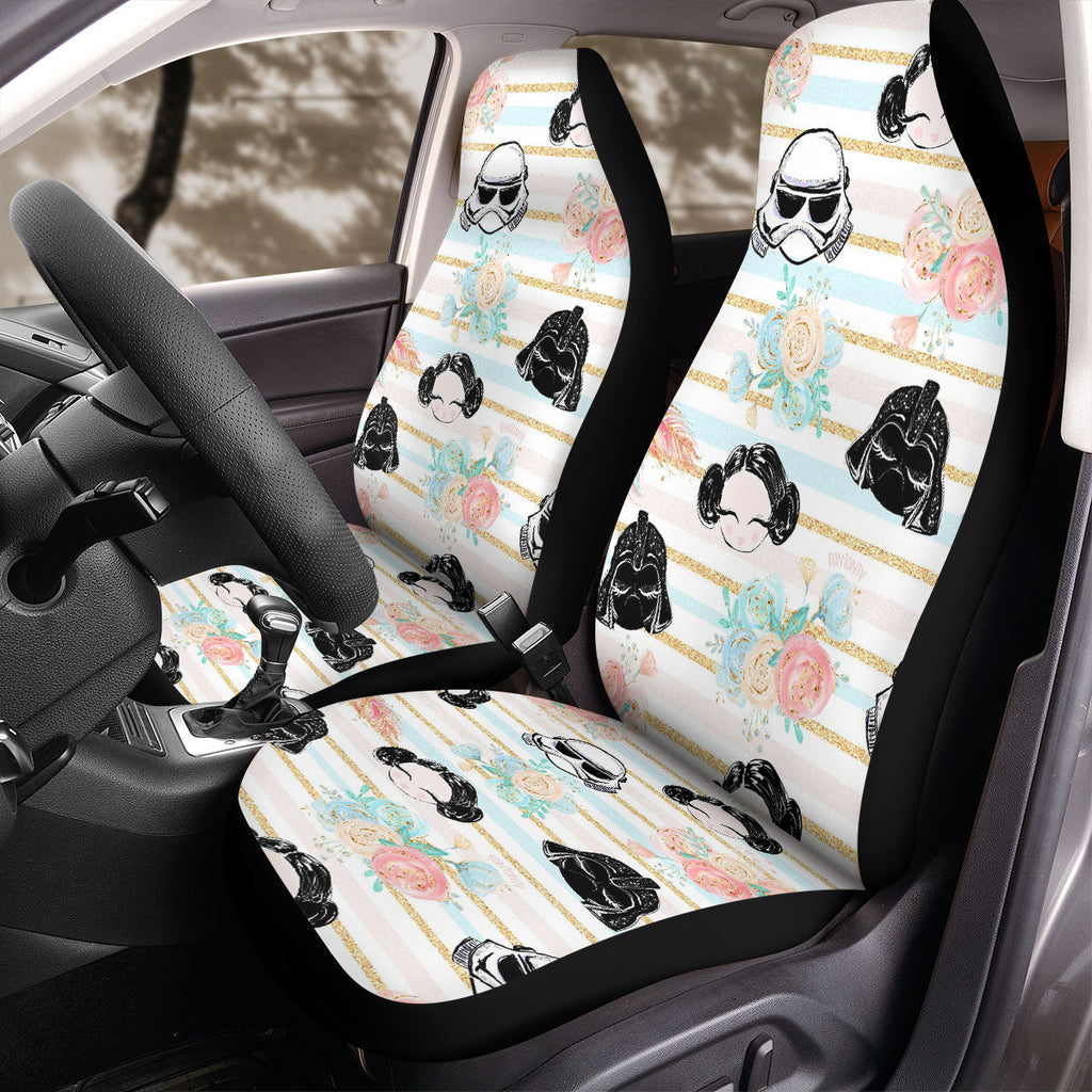 SW Car Seat Covers Stormtrooper Darth Vader Chibi Flower Pattern Seat Covers White