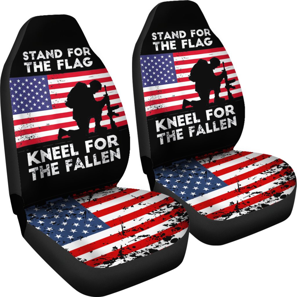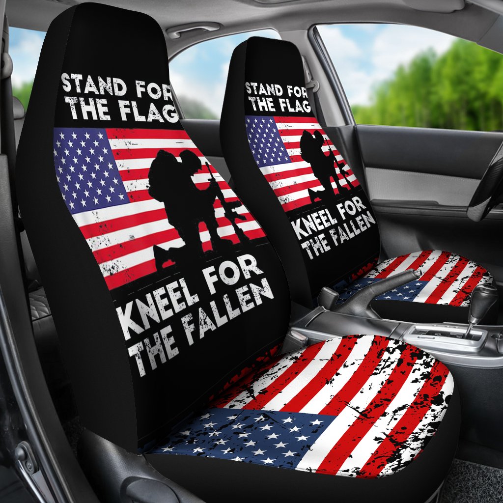 Veteran Car Seat Covers Stand For The Flag Kneel For Fallen Seat Covers Black
