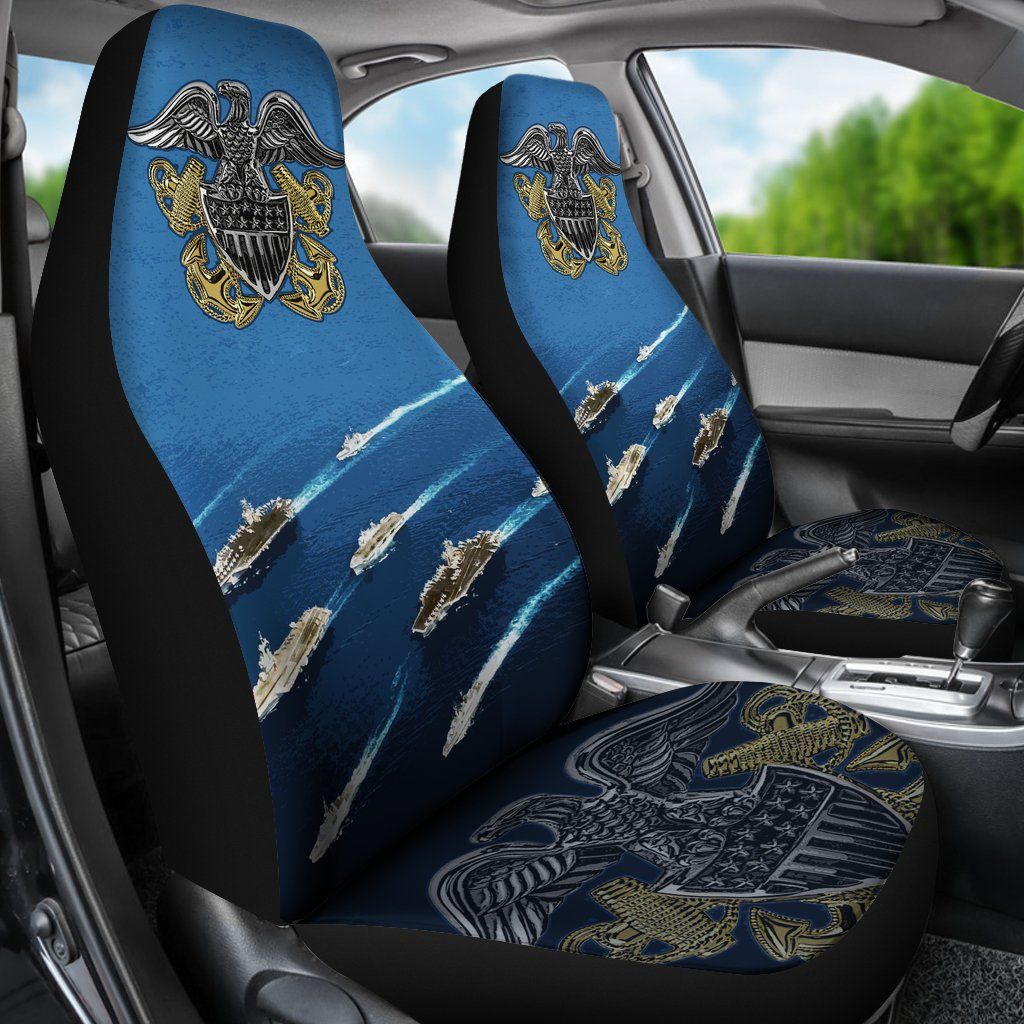 Veteran Car Seat Covers United States Navy Emblem Symbol Seat Covers Blue