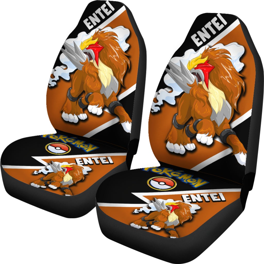 PKM Car Seat Covers PKM Entei Pokeball Graphic Seat Covers Black Brown