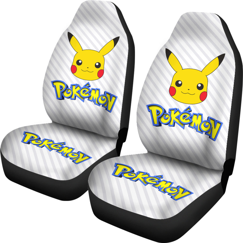 PKM Car Seat Covers PKM Pikachu Cute Face Striped Pattern Seat Covers Gray Yellow