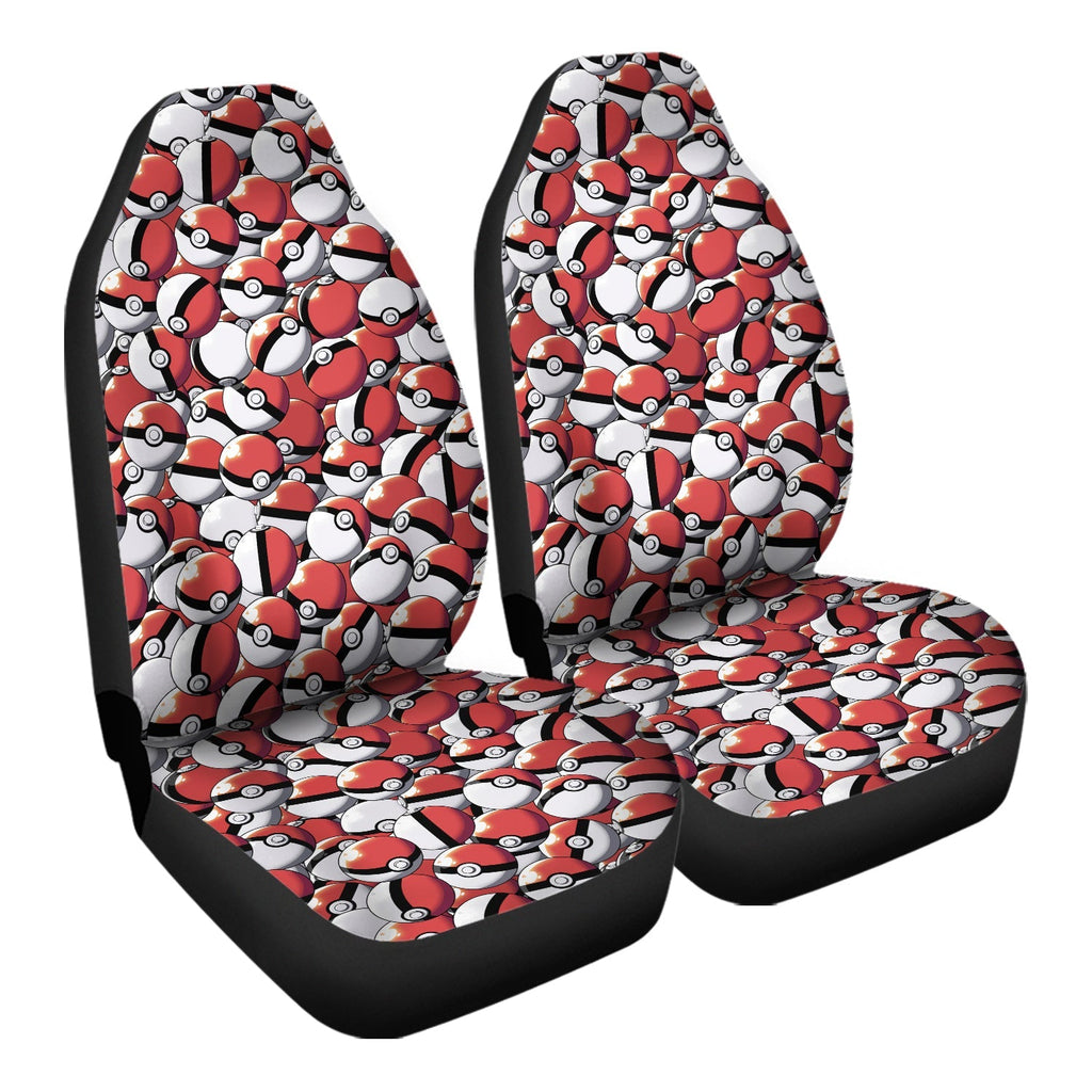PKM Car Seat Covers Pokeball Doodle Graphic Pattern Seat Covers Red White