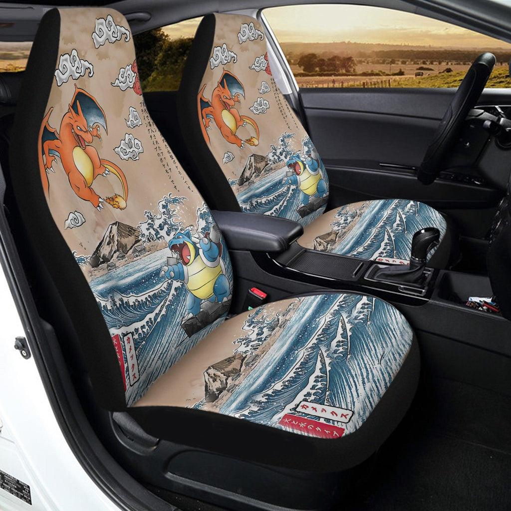 PKM Car Seat Covers Charizard Fights Blastoise The Great Wave Seat Covers Colorful