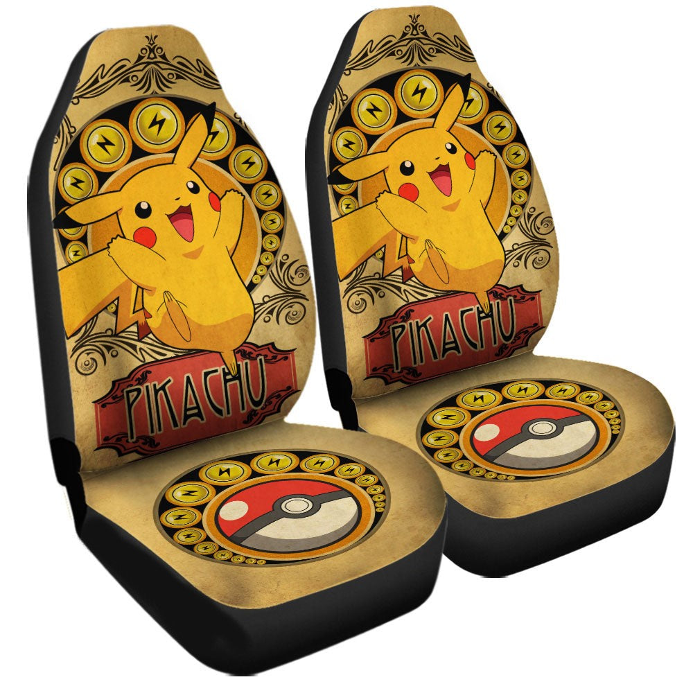 PKM Car Seat Covers Electric PKM Pikachu Pokeball Graphic Seat Covers Yellow