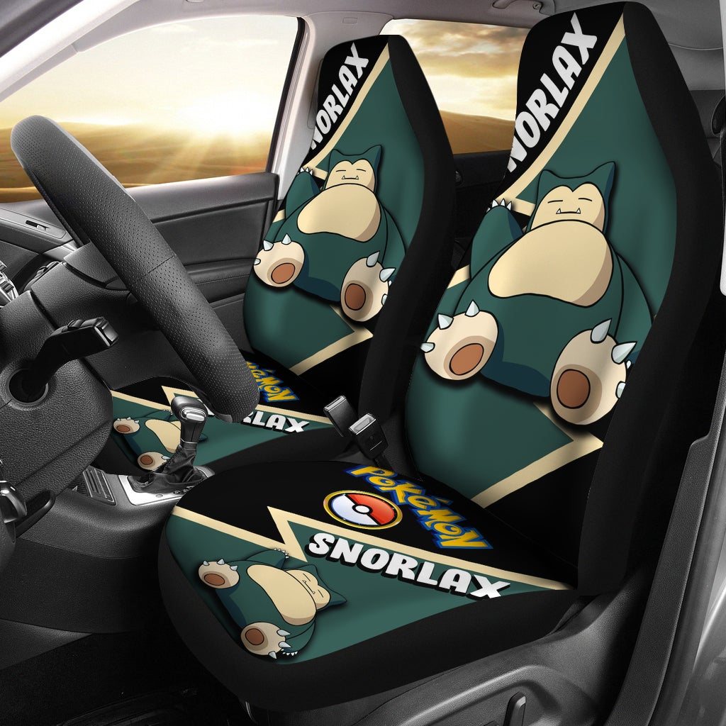 PKM Car Seat Covers PKM Snorlax Sleeping Pkeball Graphic Seat Covers Black Green