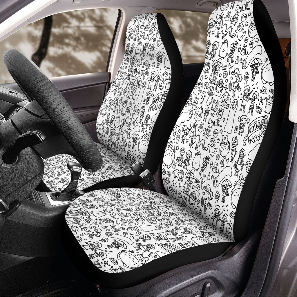 SGhibli Car Seat Covers Drawing Ghibli Characters Pattern Seat Covers White