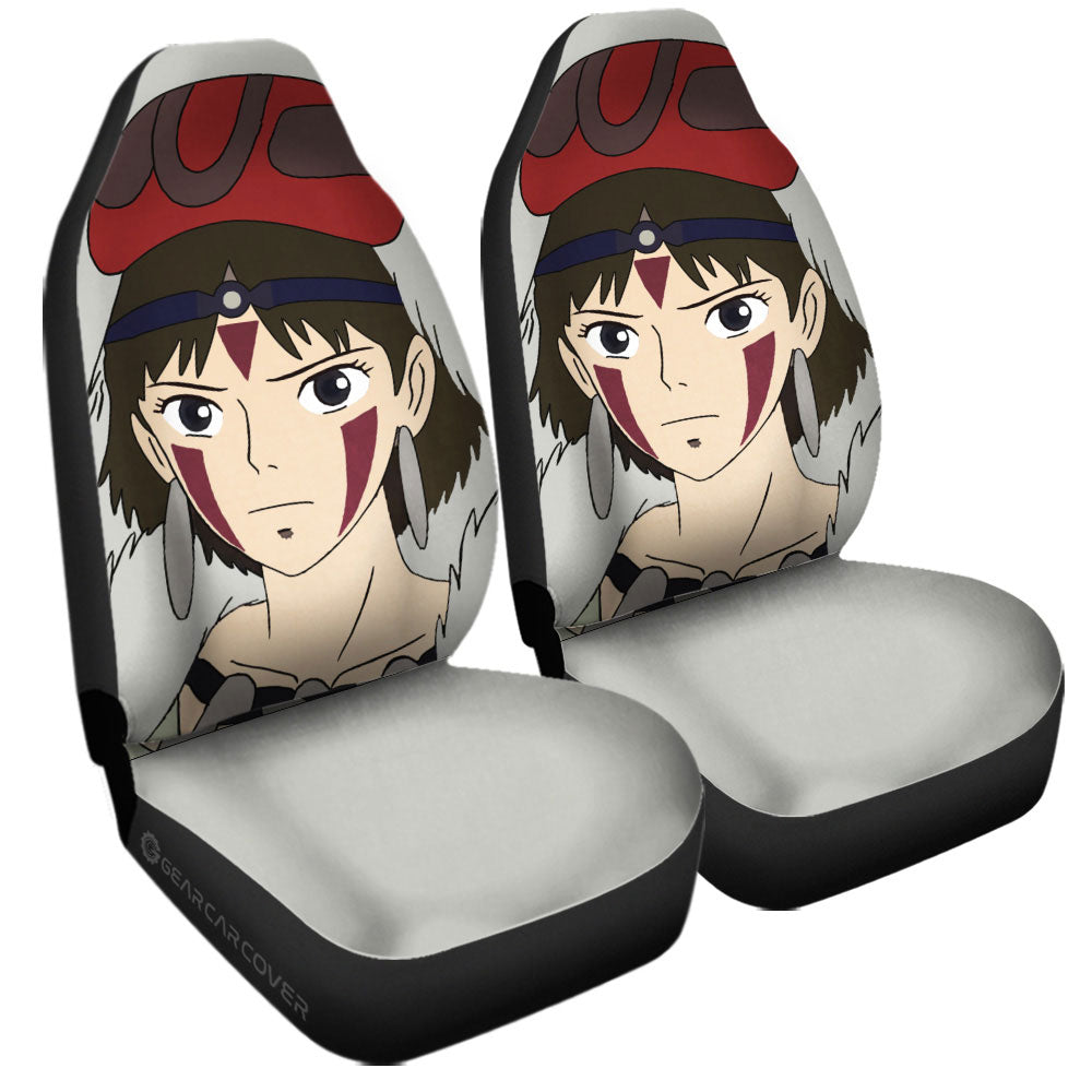 SGhibli Car Seat Covers Princess Mononoke Character Graphic Seat Covers White Red