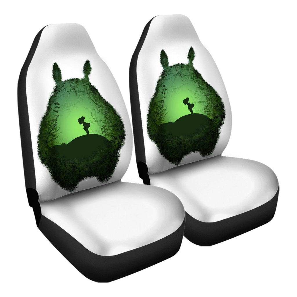 SGhibli Car Seat Covers Totoro And Child Silhouette Seat Covers White Green