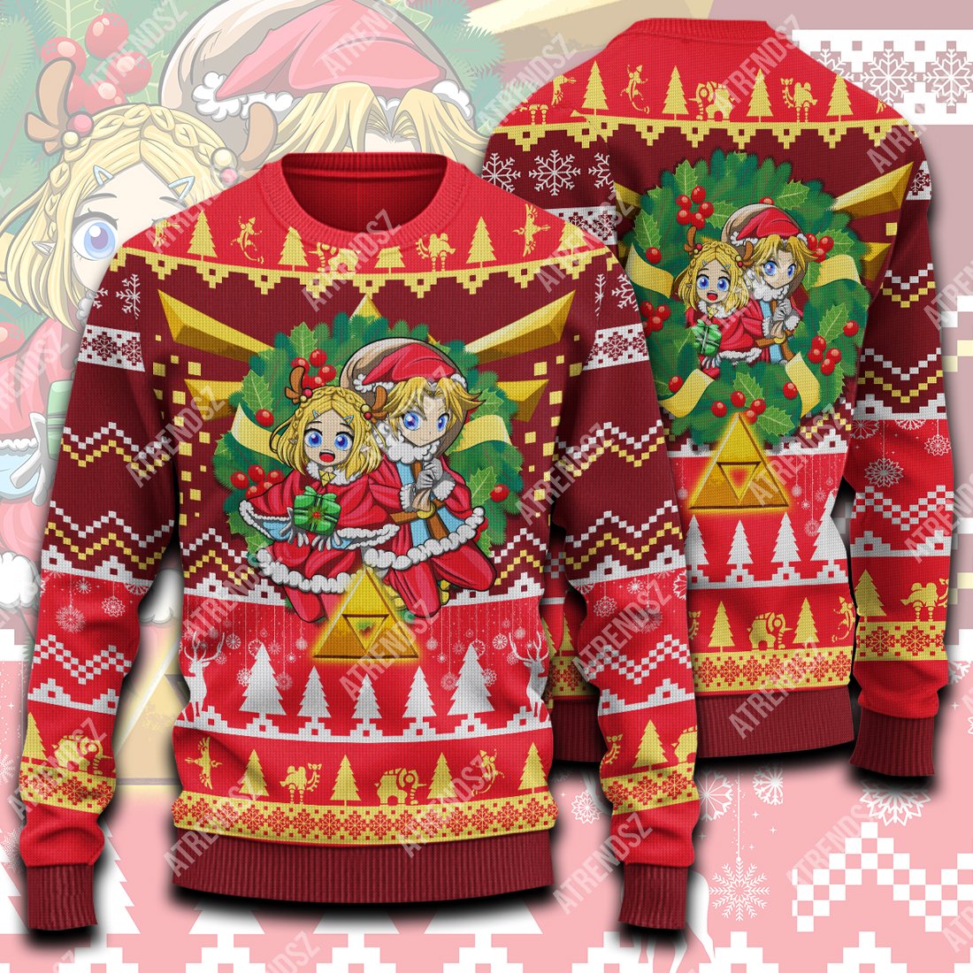 Legend Of Zelda Sweatshirt Chibi Zelda Link Wreath Christmas Ugly Sweatshirt Legend Of Zelda Ugly Sweatshirt