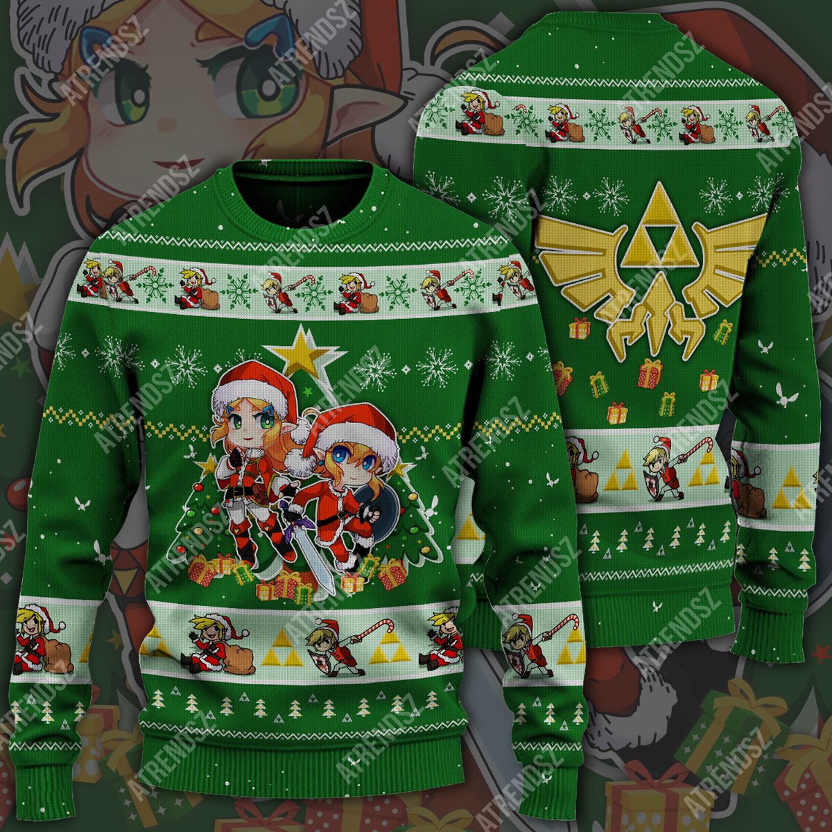 Legend Of Zelda Sweatshirt Green Chibi Link Zelda Hyrule Symbol Ugly Sweatshirt Legend Of Zelda Ugly Sweatshirt