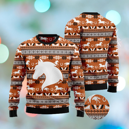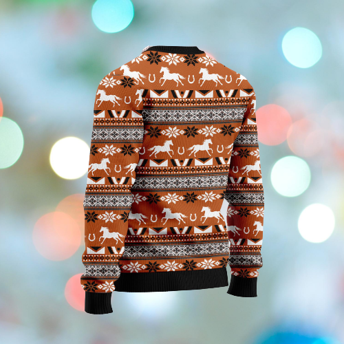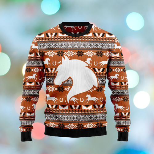 Horse Christmas Ugly Sweatshirt Horse White Silhouette Brown Sweatshirt