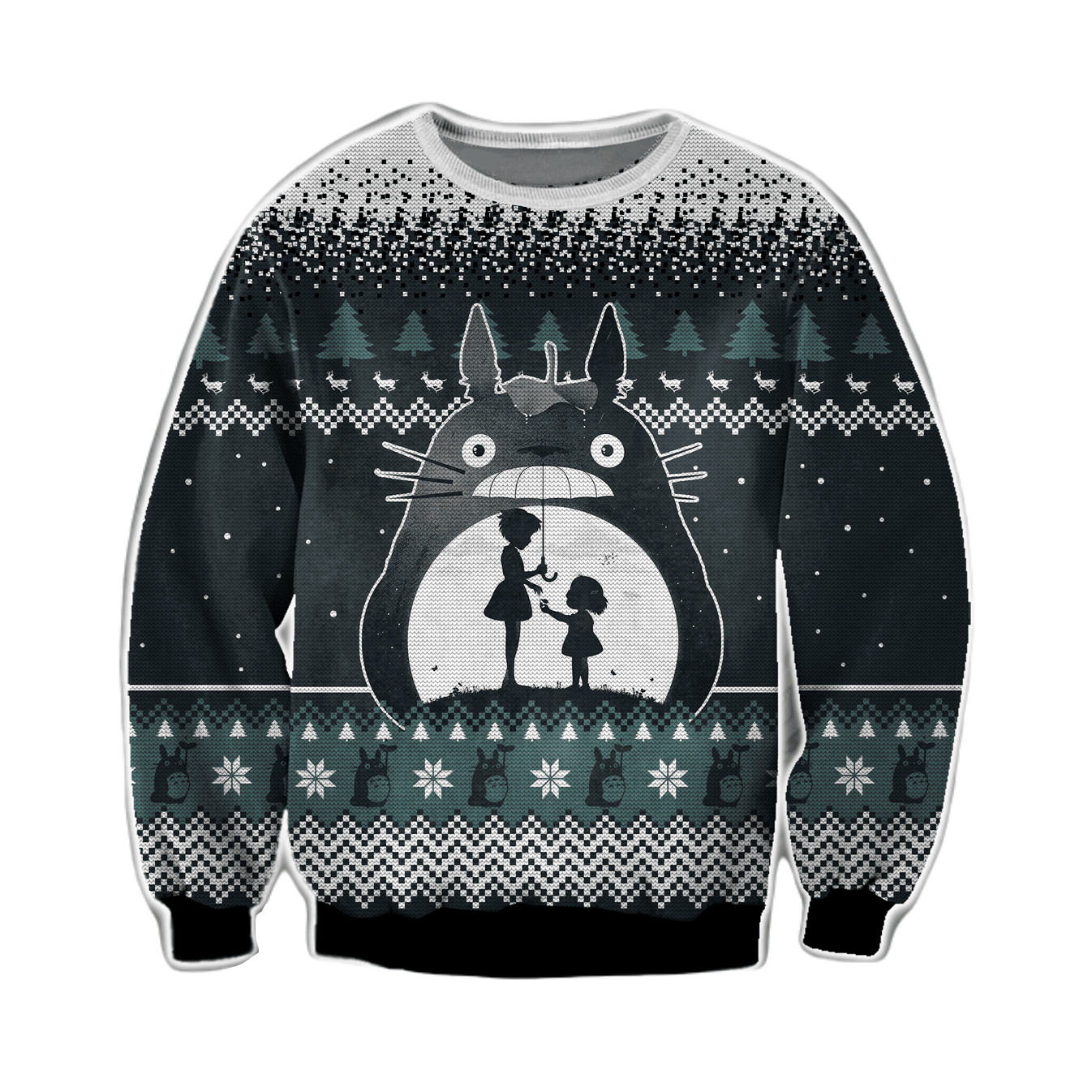 SGhibli Sweatshirt Totoro Silhouette Characters Sweatshirt Black White Unisex