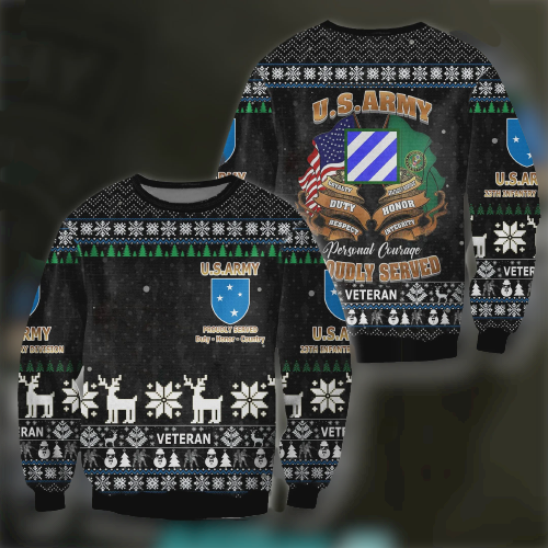 Veteran Sweatshirt US Army Personal Courage Proudly Served Black Christmas Ugly Sweatshirt