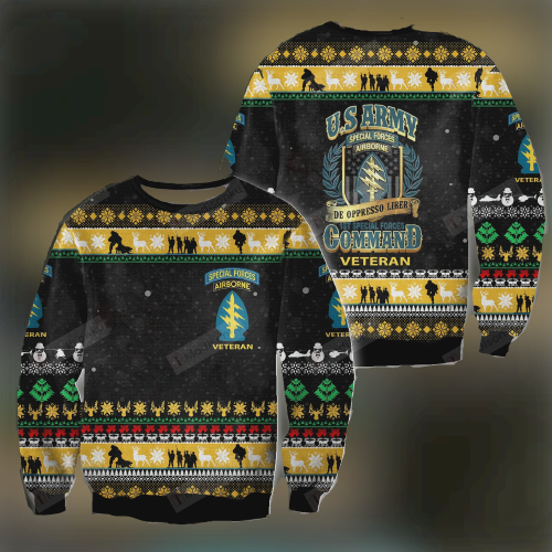 Veteran Sweatshirt US Army Special Forces Airborne Christmas Pattern Black Ugly Sweatshirt