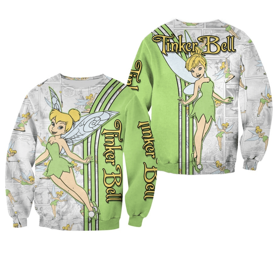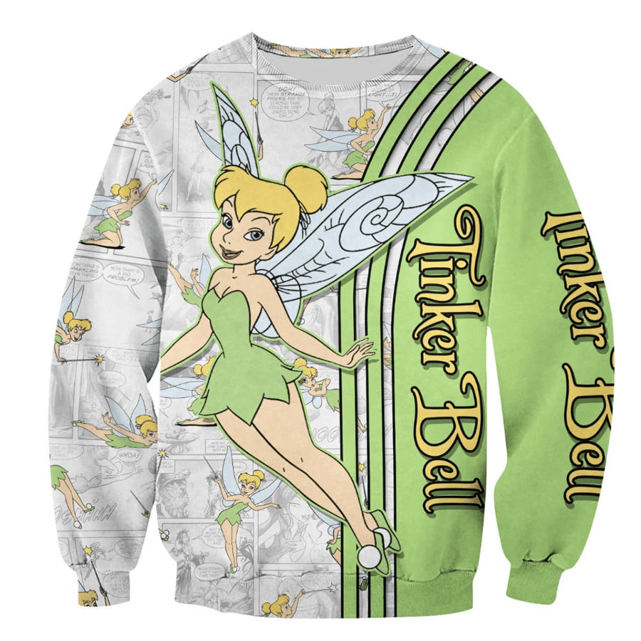 Tinkerbell Sweatshirt Tinker Bell Comic Style Sweatshirt White Green Unisex