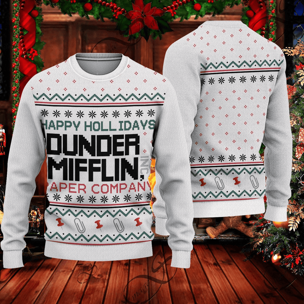 The Office Sweatshirt The Office Happy Holliday Dunder Mifflin Sweatshirt White Unisex