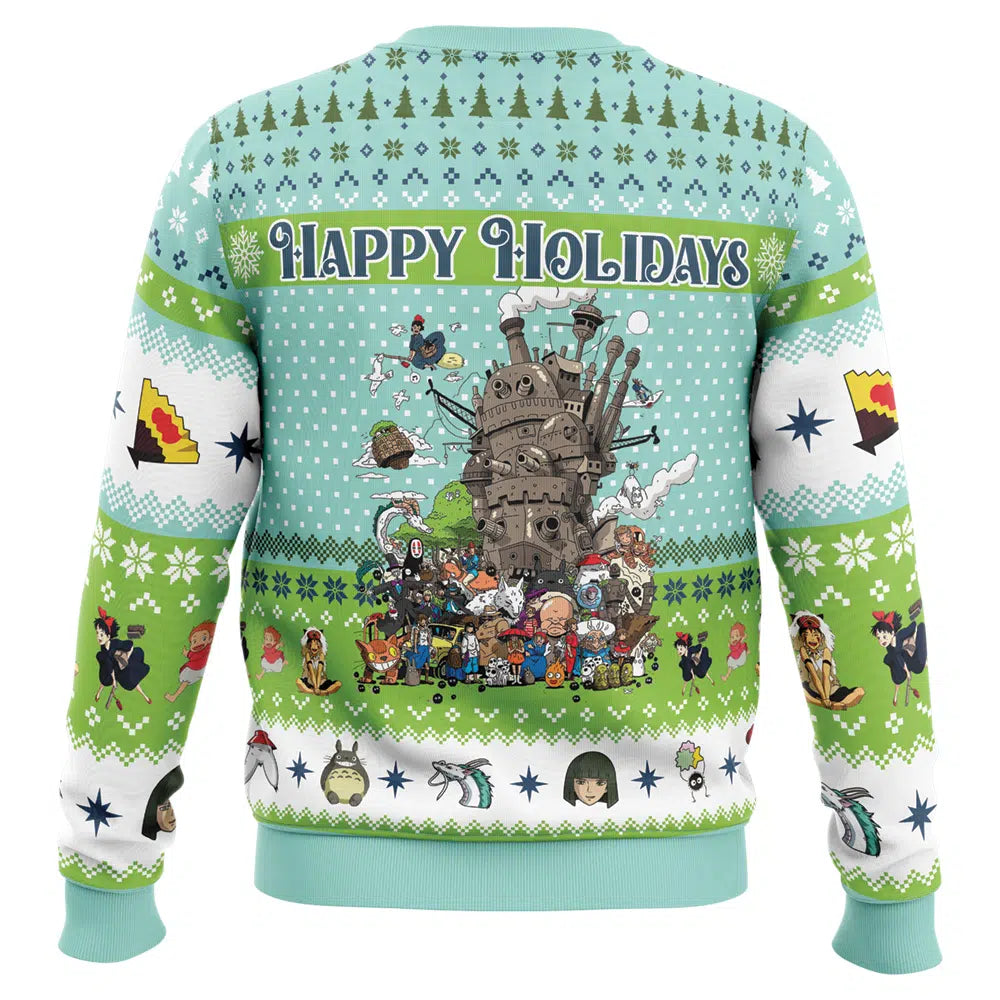 SGhibli Sweatshirt Happy Holidays SGhibli Sweatshirt Blue Green Unisex