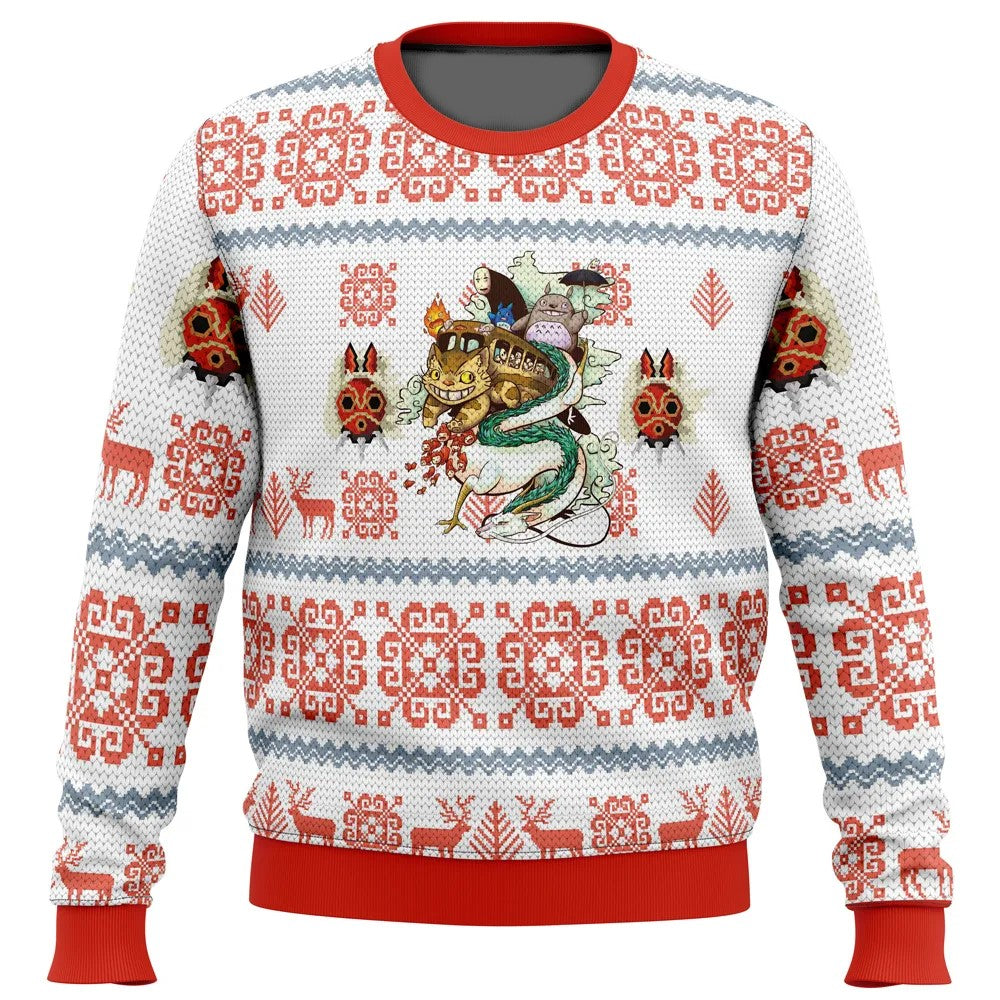 SGhibli Sweatshirt Ghibli Characters Christmas Pattern Sweatshirt White Red Unisex