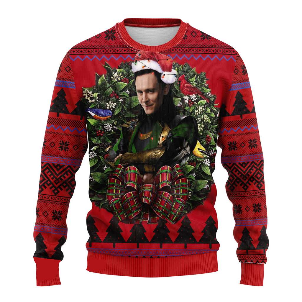 Loki Sweatshirt Loki Villain Christmas Wreath Sweatshirt Red Unisex