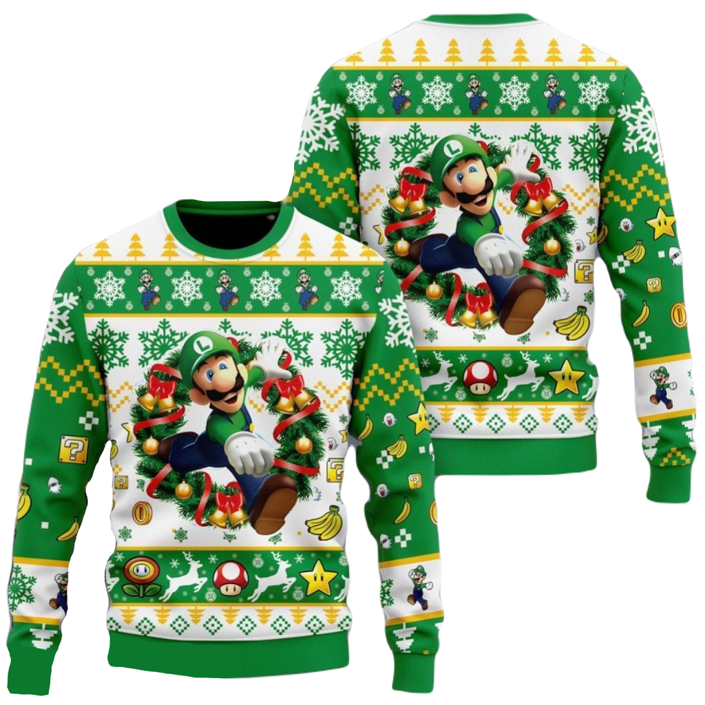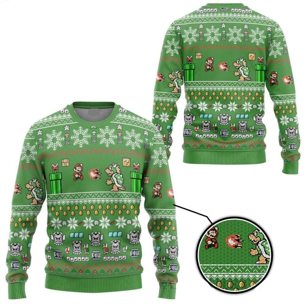 Mario Sweatshirt Mario Snowflake And Turtle Sweatshirt Green Unisex