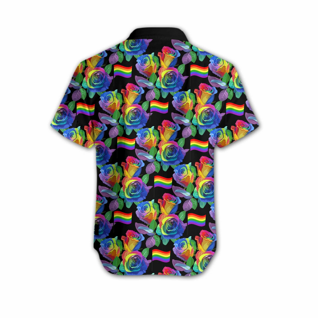 LGBT Hawaii Shirt Flag Of LGBT Rose Pattern Hawaiian Shirt Colorful Unisex
