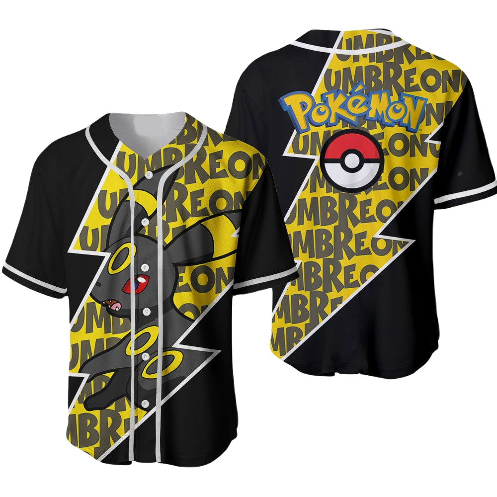 PKM Baseball Jersey Umbreon Graphic PKM Jersey Shirt Yellow Black Unisex