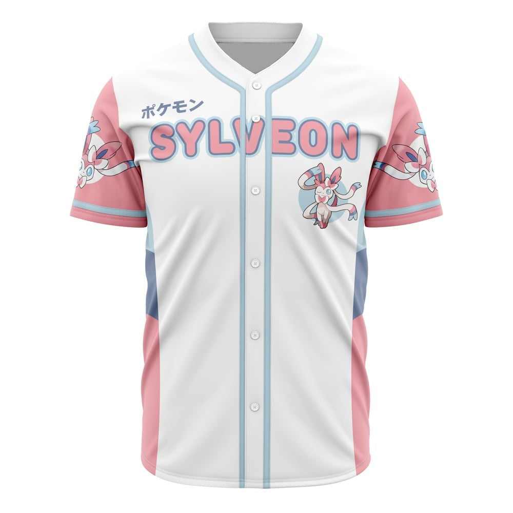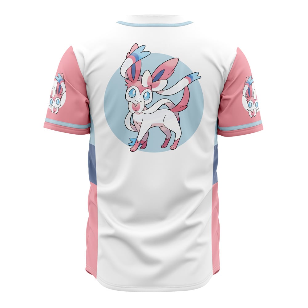 PKM Baseball Jersey PKM Fairy Type Sylveon Graphic Jersey Shirt Pink White Unisex