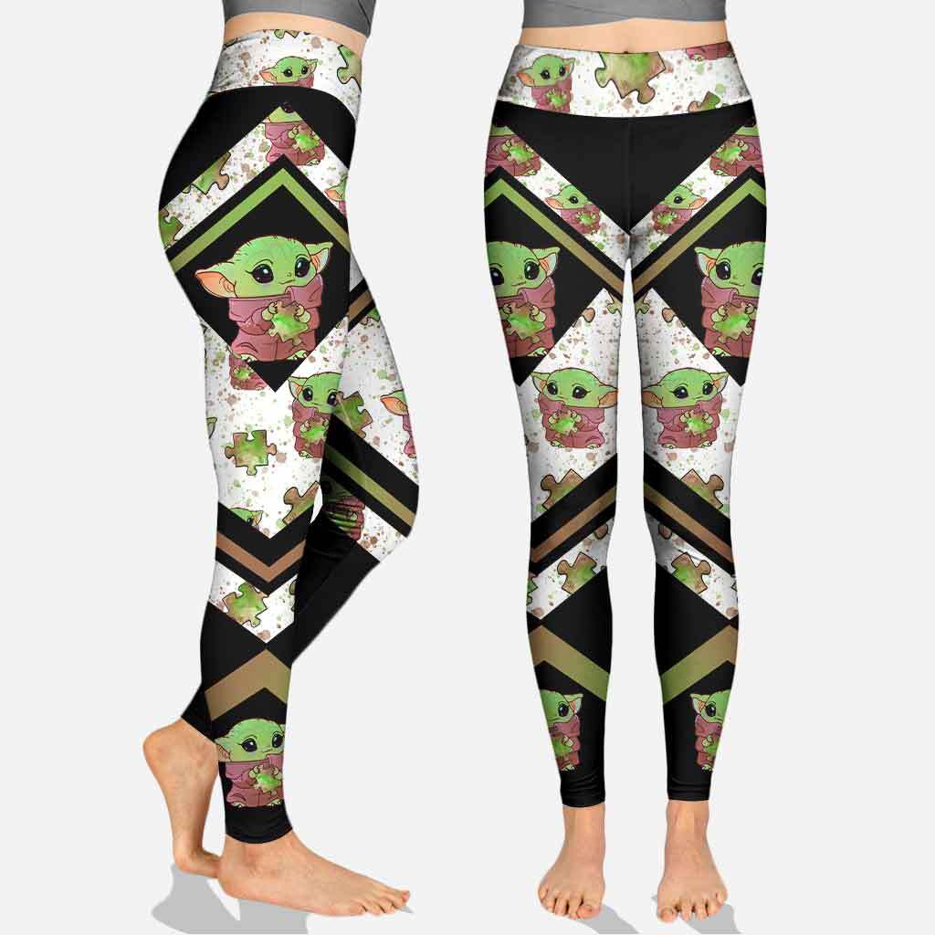 SW Leggings Baby Yoda Hugs Puzzle Pieces Pattern High Waisted Legging Black White For Women