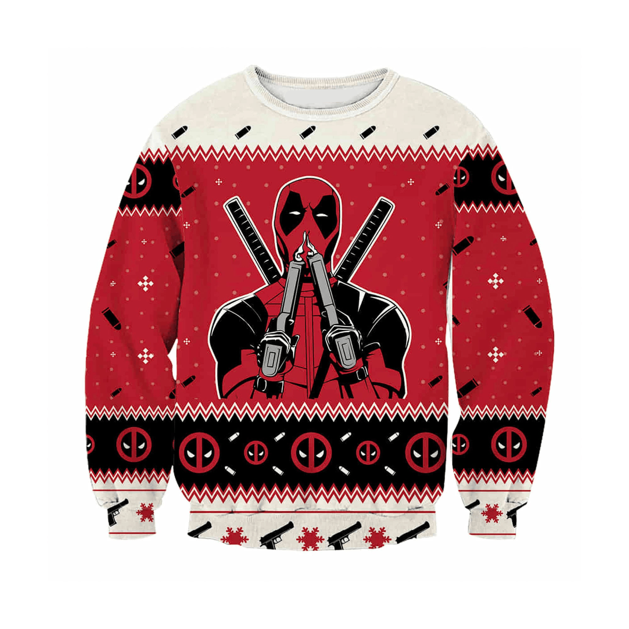 Deadpool Sweatshirt MV Deadpool Smoking Symbol Pattern Sweatshirt Red Unisex