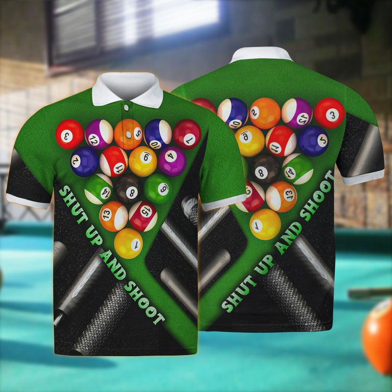 Billard Polo Shirt Shut Up And Shoot Billard Boys Polo Shirts Black Green