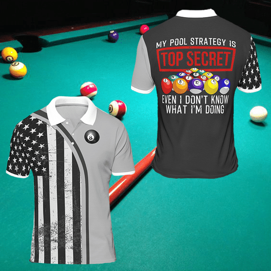 Billard Polo Shirt My Pool Strategy Is Top Secret Boys Polo Shirts Black White