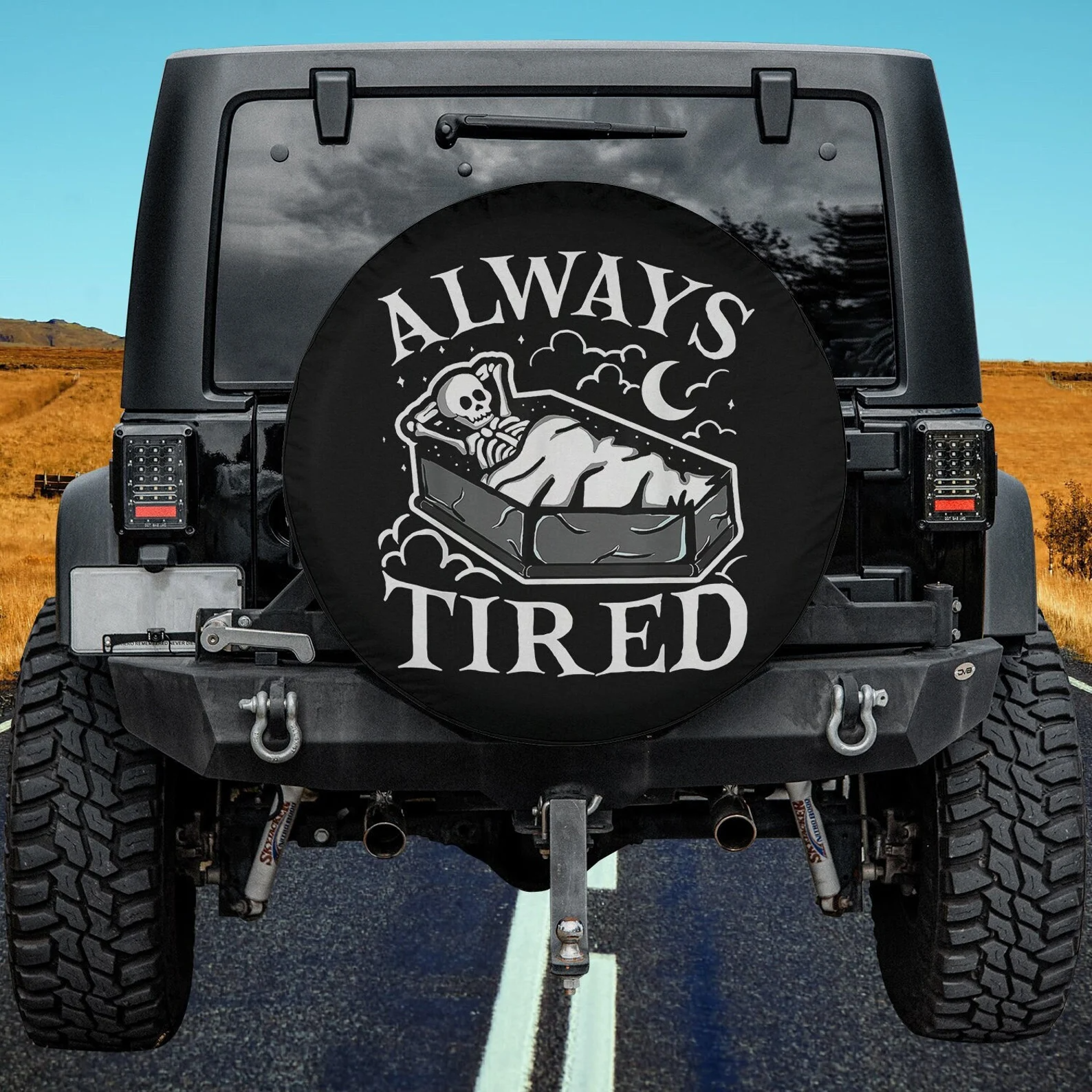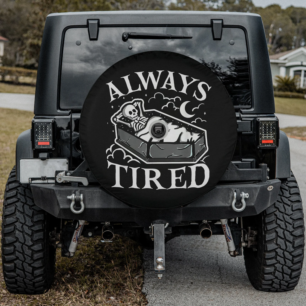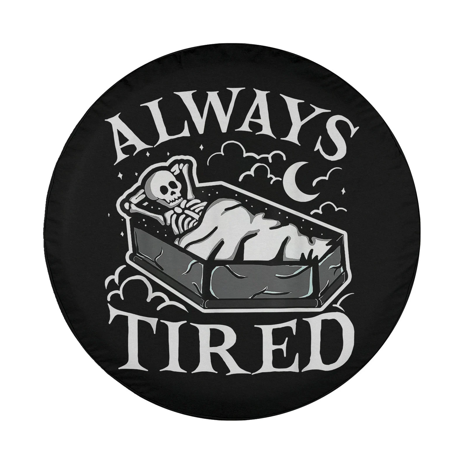 Funny Spare Tire Cover Always Tired Funny Skeleton Sleeping Tire Covers Black