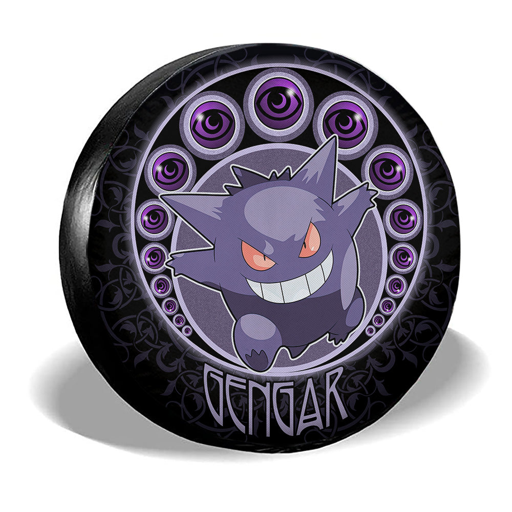 PKM Spare Tire Cover PKM Gengar Psychic Ball Symbol Pattern Tire Covers Black Purple