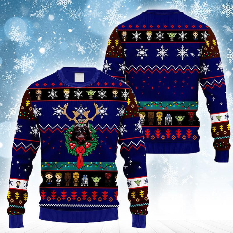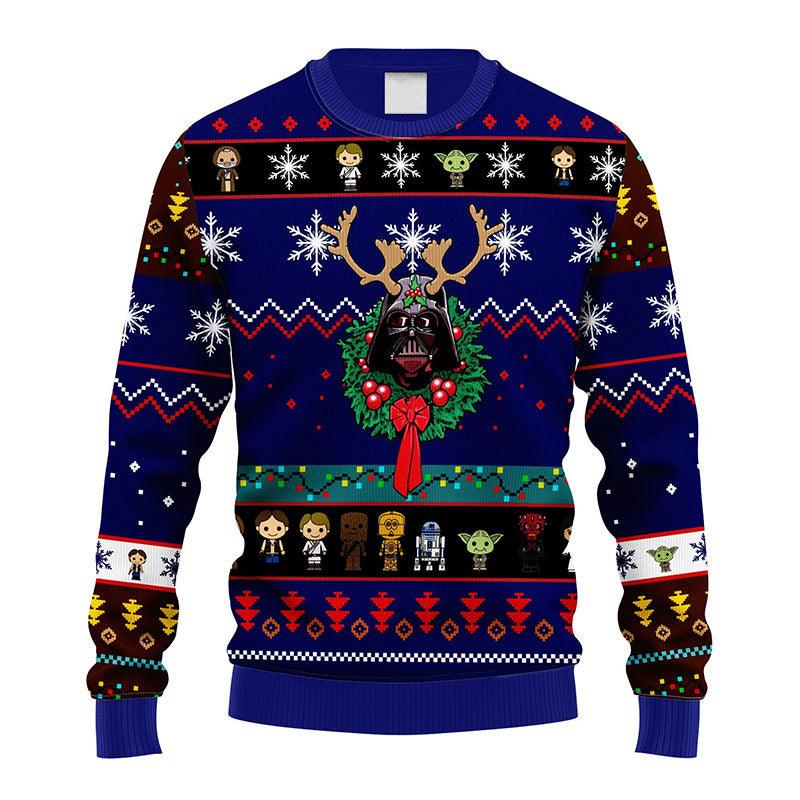 SW Sweatshirt Darth Reindeer Christmas Wreath Sweatshirt Blue Unisex
