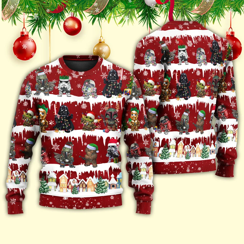 SW Sweatshirt Darth Vader Mandalorian Baby Grogu Sweatshirt Red Unisex