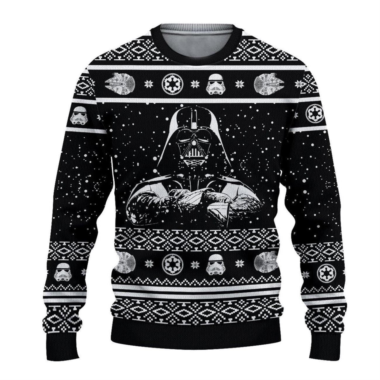 SW Sweatshirt Darth Vader SW Pattern Sweatshirt Black White Unisex
