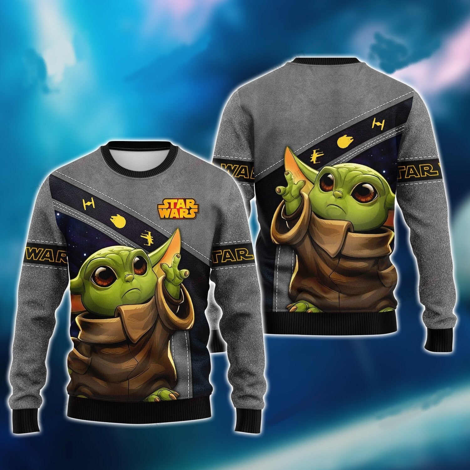 SW Sweatshirt SW Pattern Grogu Graphic Sweatshirt Gray Unisex